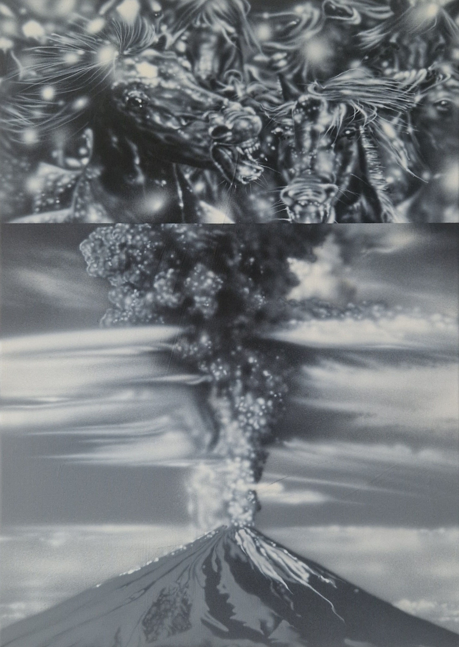 I have had the chance to do a safari in Tanzania, and I have been able to look up close to the real wilderness. The hunt, the chase, the kill, the share of food, of love, the reproduction, the protection of the tribe, the fear or others, the fights, it was all real, and it was all making sense with brutality. I am using this authenticity to depict those human emotions. I want to bring us back to a more natural state, without the gimmicks of our modern world. And when I do depict something "human made" I often make it burn, or drown... Simply because, to me, it is not the important stuff.